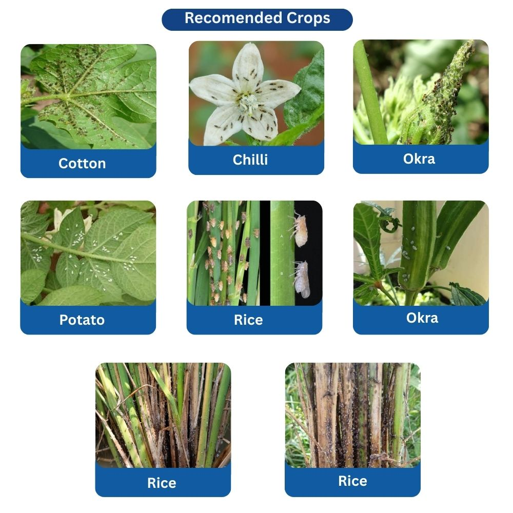 Target crops: Cotton, rice, Chili, okra, Cabbage.