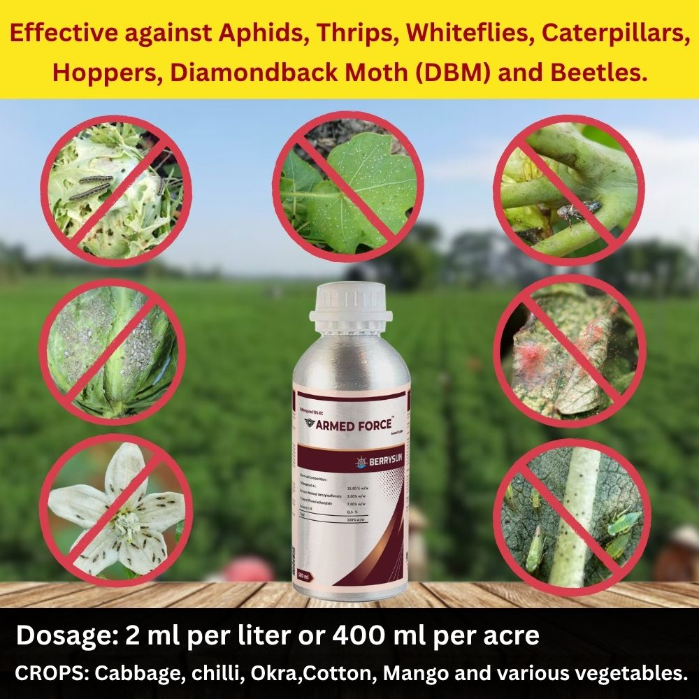 · Armed Force Insecticide works as a one-shot solution for more than one target pest, also reducing the cost of crop protection.